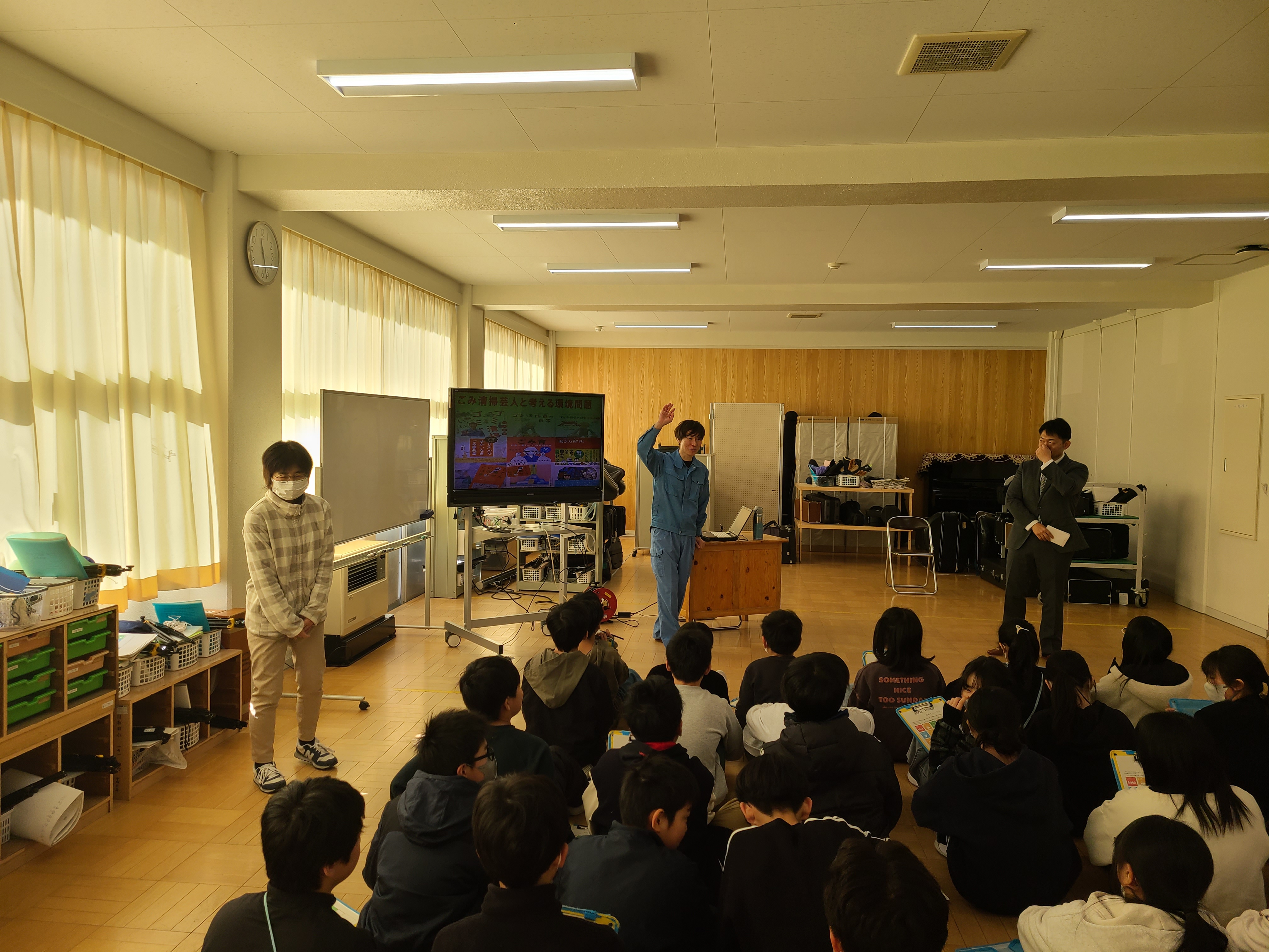 2026.01.28 【福島県】郡山市立日和田小学校 環境教育事業の実施 福島県青年部会では、令和8年1月28日(水)、郡山市立日和田小学校の6年生約70名を対象に、環境教育学習を実施しました。 本事業では、マシンガンズ滝沢氏を講師としてお招きし、「マシンガンズ滝沢が考えるごみ問題」をテーマに講話を行いました。子どもたちは、滝沢氏がこれまでの経験を通して考えてきたごみ問題に関するお話に終始引き込まれ、環境保全への意識を高める良い機会となったものと思われます。