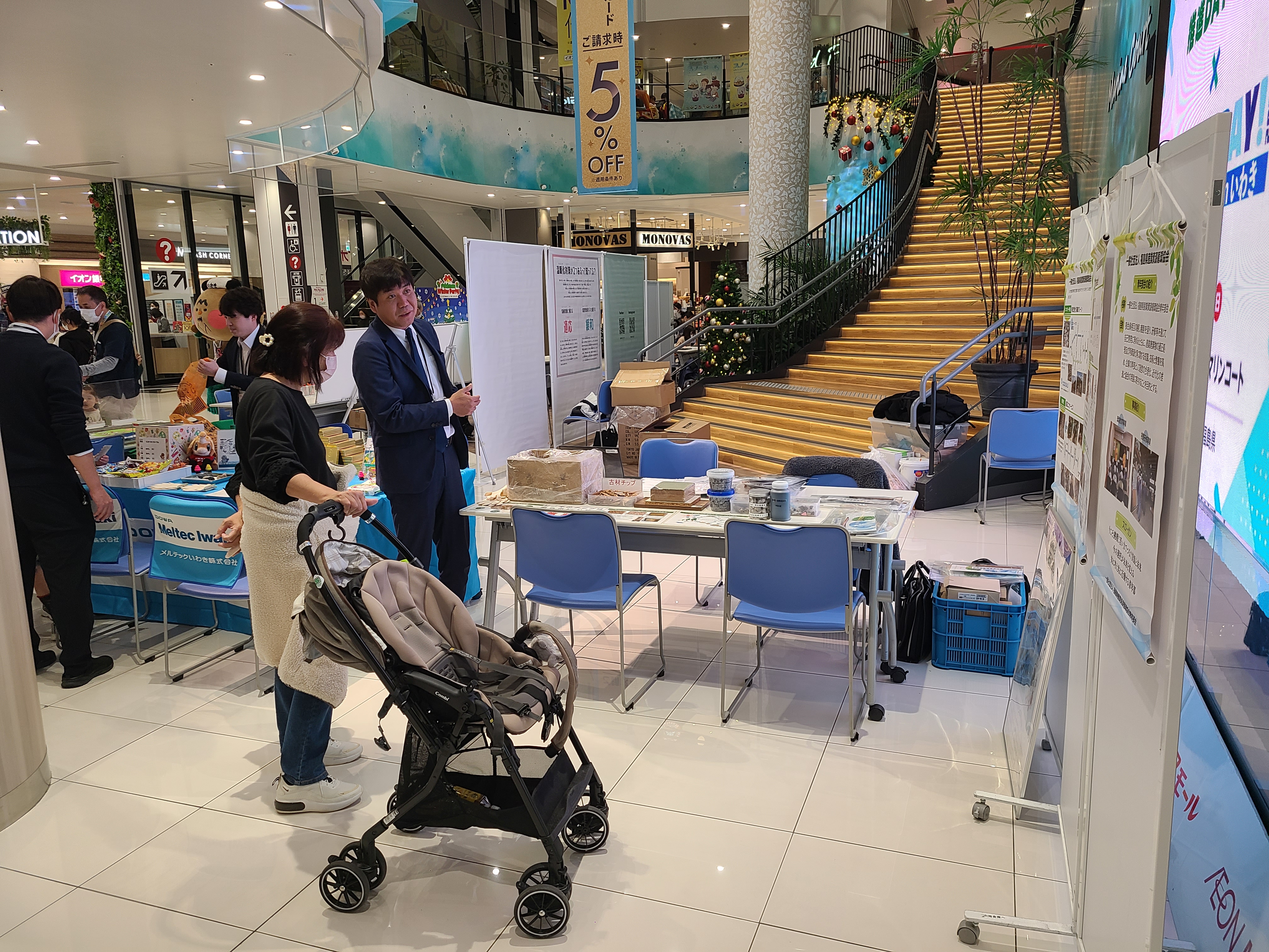 本イベントはいわき市で開催されることから、いわき方部に所属する青年部会員のうち、廃棄物のリサイクルを主業務としている会員企業にご協力いただき、リサイクルの流れやリサイクル後の製品サンプルを展示しました。これにより、協会の活動や会員企業の取り組み、そしてリサイクルの重要性について、来場された方々へ広く伝えることができました。