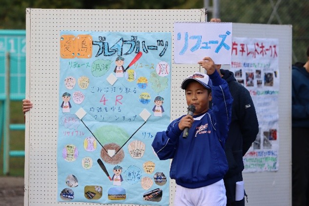その中でも、リデュース・リユース・リサイクルに加え、不要なものを断る「リフューズ」を含めた 「4R」 をテーマに、活動内容と具体的な取り組み事例をわかりやすく紹介してくれた「愛島ブレイブハーツ」が、優秀賞に選出されました。