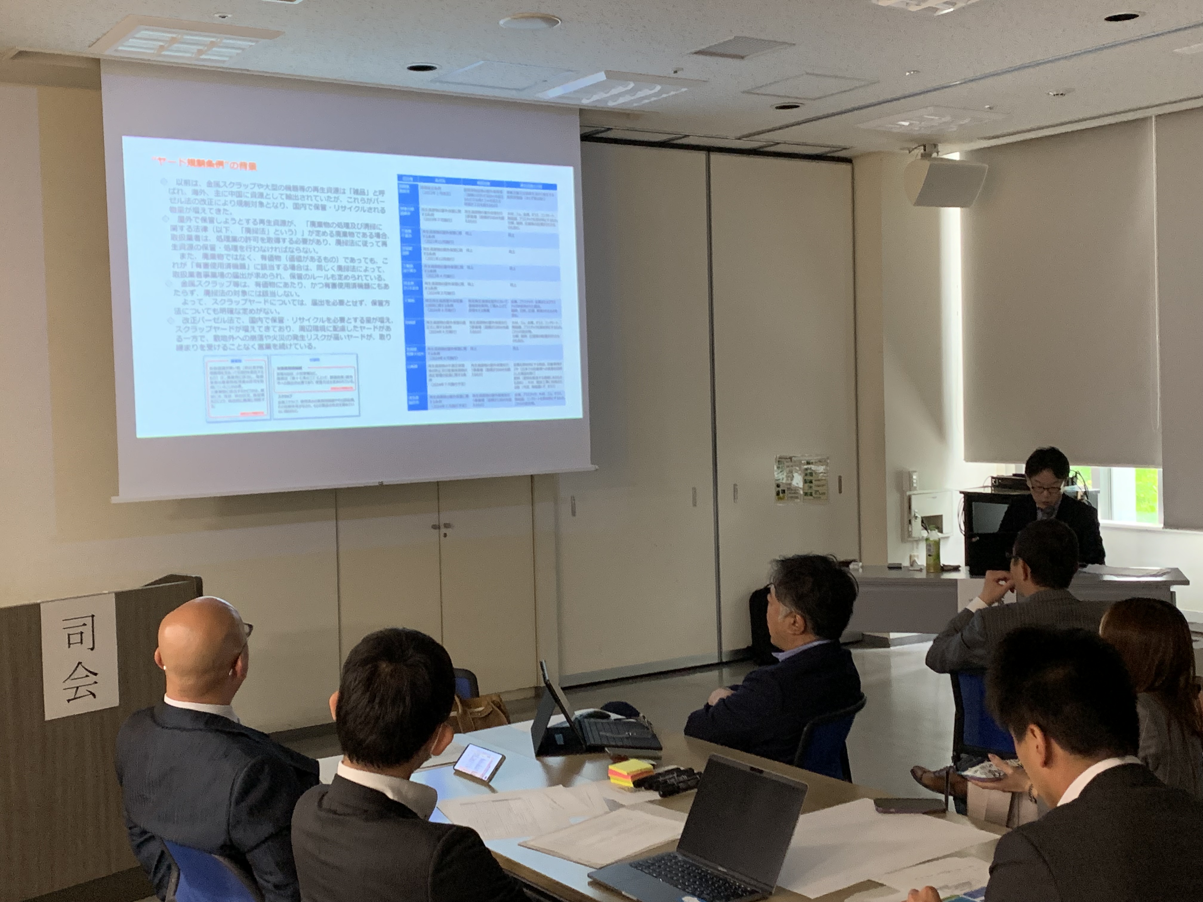 毎年、定時総会に合わせ、法律および条令等に係る研修会を開催しており、今年度は、「昨今の不法投棄の実態・動向」を開催しました。研修会では、①不法投棄の現状について、②不適正ヤード問題について、③どのように対処すべきかの内容を取り上げ、講演終了後、参加者によるグループディスカッションを行いました。
